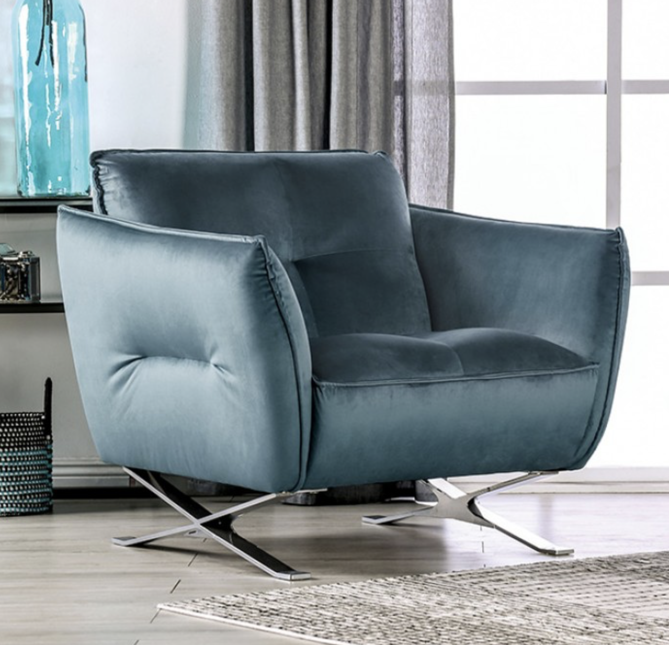 Bring modern elegance and luxurious comfort to your living space with this contemporary teal living room set. Featuring a coordinated sofa, loveseat, and chair, this collection showcases a sleek silhouette with soft curves and refined tufted detailing, creating a stylish centerpiece for any modern interior.