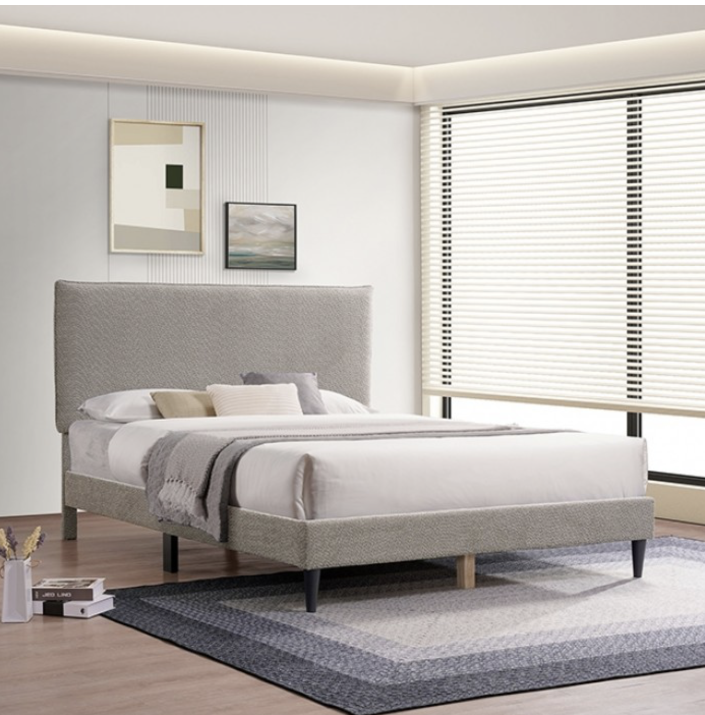 Fully upholstered in a textured boucle fabric, the bed delivers a soft, plush feel while adding subtle visual interest to your space. The light brown tone creates a warm, neutral palette that easily complements a variety of décor styles. Supported by a sturdy frame with plywood and LVL slats, this bed provides reliable durability and mattress-ready convenience without the need for a box spring.