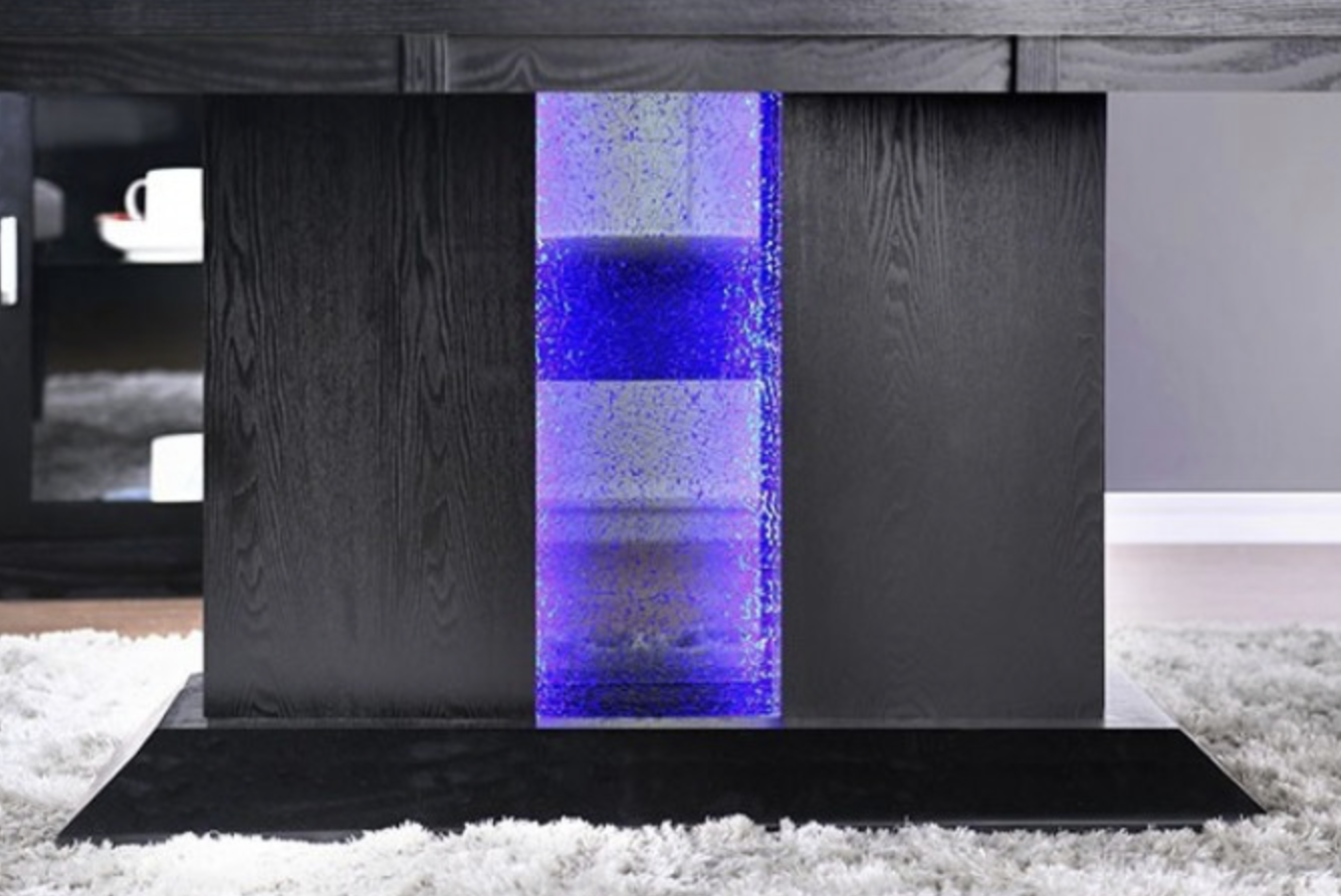 Finished in a sophisticated black and beige combination, the table features a high-gloss lacquer coating that enhances its clean, polished look. The bold pedestal base is designed with built-in LED lighting, adding a unique and modern touch that elevates the entire dining experience.