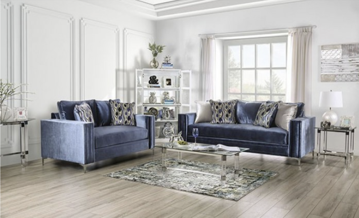 This contemporary loveseat combines modern elegance with everyday comfort. Upholstered in smooth satin blue microfiber, it offers a soft, inviting feel while maintaining a sleek and refined appearance. The chrome-finished frame adds a stylish silver accent that enhances its clean, contemporary design. Crafted with a solid wood structure and durable materials, this piece is built for both stability and long-lasting use.