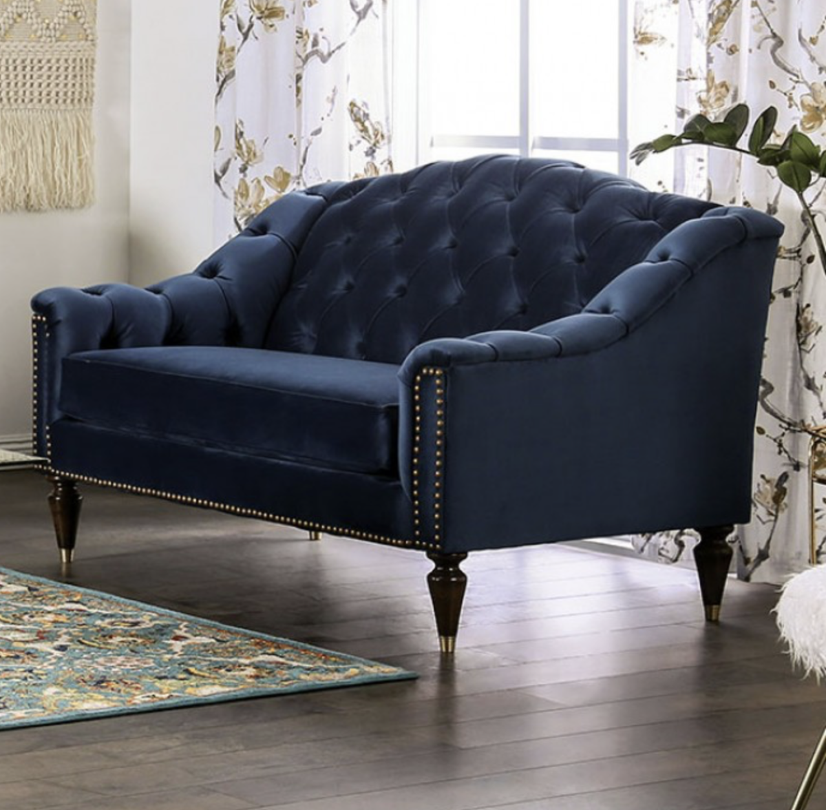 Bring refined elegance and luxurious comfort to your living space with this deep blue velvet-inspired sofa. Designed with a transitional silhouette, this piece blends classic charm with modern sophistication, making it a standout centerpiece for both traditional and contemporary interiors.