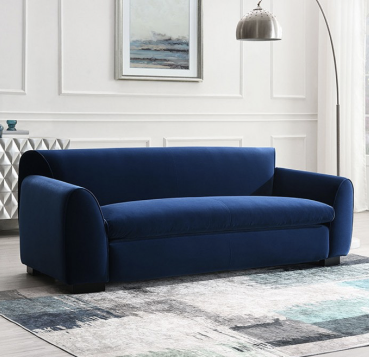 Bring bold color and contemporary comfort to your living space with this royal blue velvet loveseat. Designed with clean lines and a modern silhouette, this loveseat makes a striking statement while remaining inviting and comfortable for everyday use.