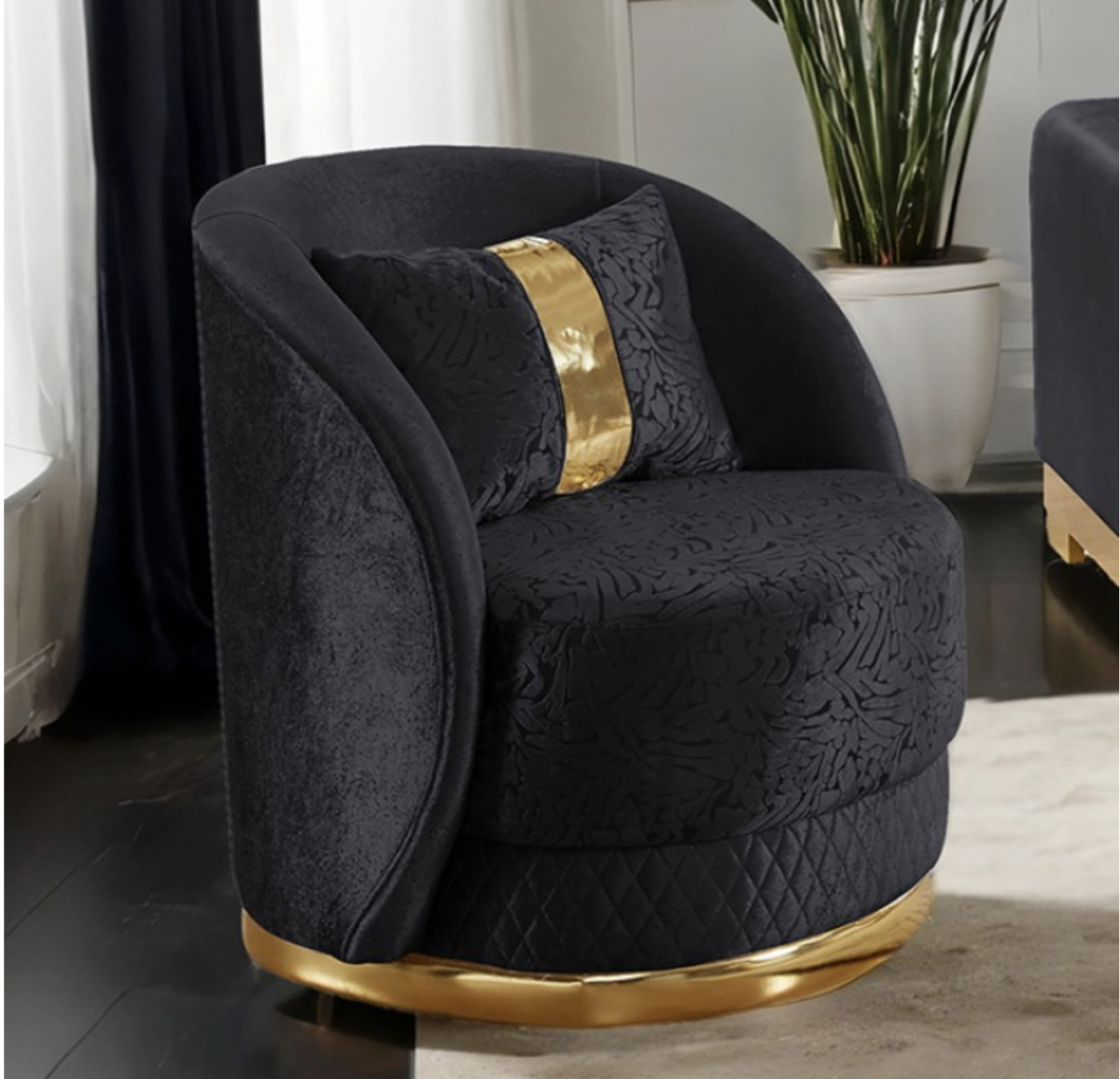 Make a bold statement in your living space with this stunning 3-piece glam living room set, featuring a sofa, loveseat, and chair designed to bring luxury, comfort, and modern elegance together. Upholstered in rich black fabric and accented with sleek gold detailing, each piece adds a refined, high-end look that instantly elevates contemporary interiors.