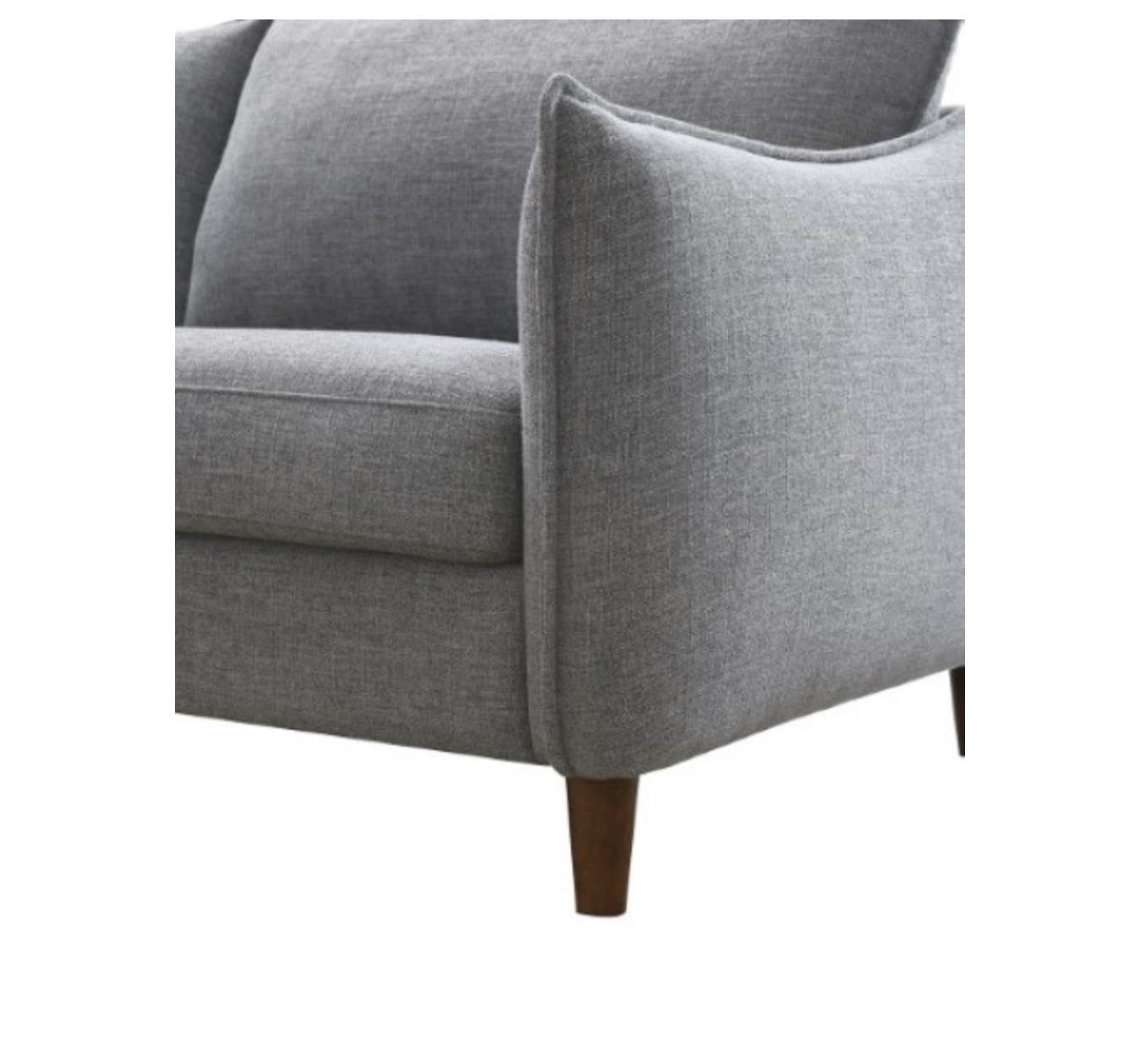 Each piece is upholstered in soft gray chenille fabric that provides a cozy texture paired with plush foam cushioning for supportive everyday seating. The neutral gray upholstery blends easily with a wide range of décor styles, while the solid wood frames ensure durability and long-lasting stability. Walnut-finished legs add warmth and contrast to the design, enhancing the set’s refined contemporary look.