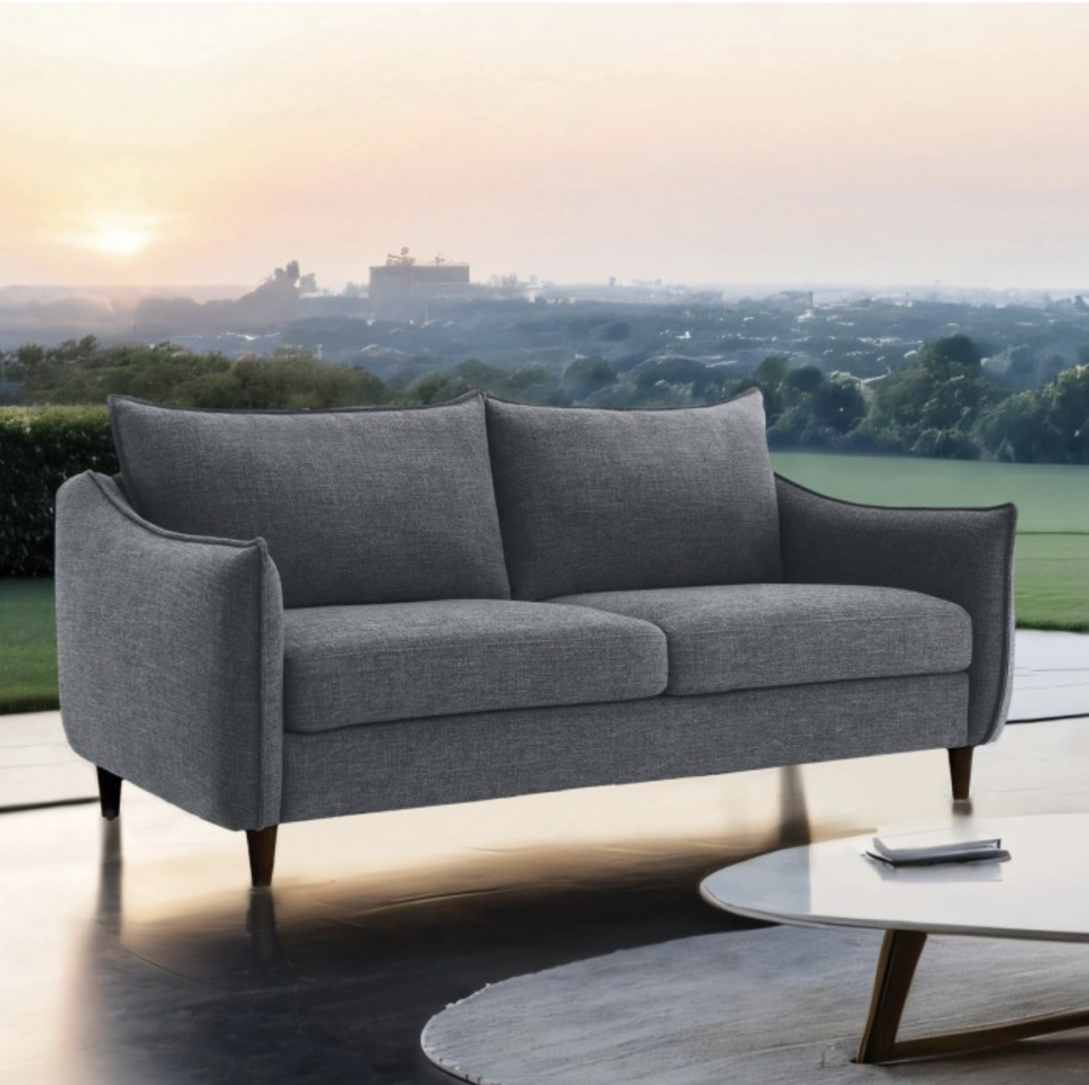 Bring contemporary comfort and clean modern style to your living space with this coordinated gray living room set. Featuring a matching sofa, loveseat, and chair, this collection offers a balanced silhouette with softly curved arms and tailored lines that create a welcoming and versatile centerpiece for modern interiors.